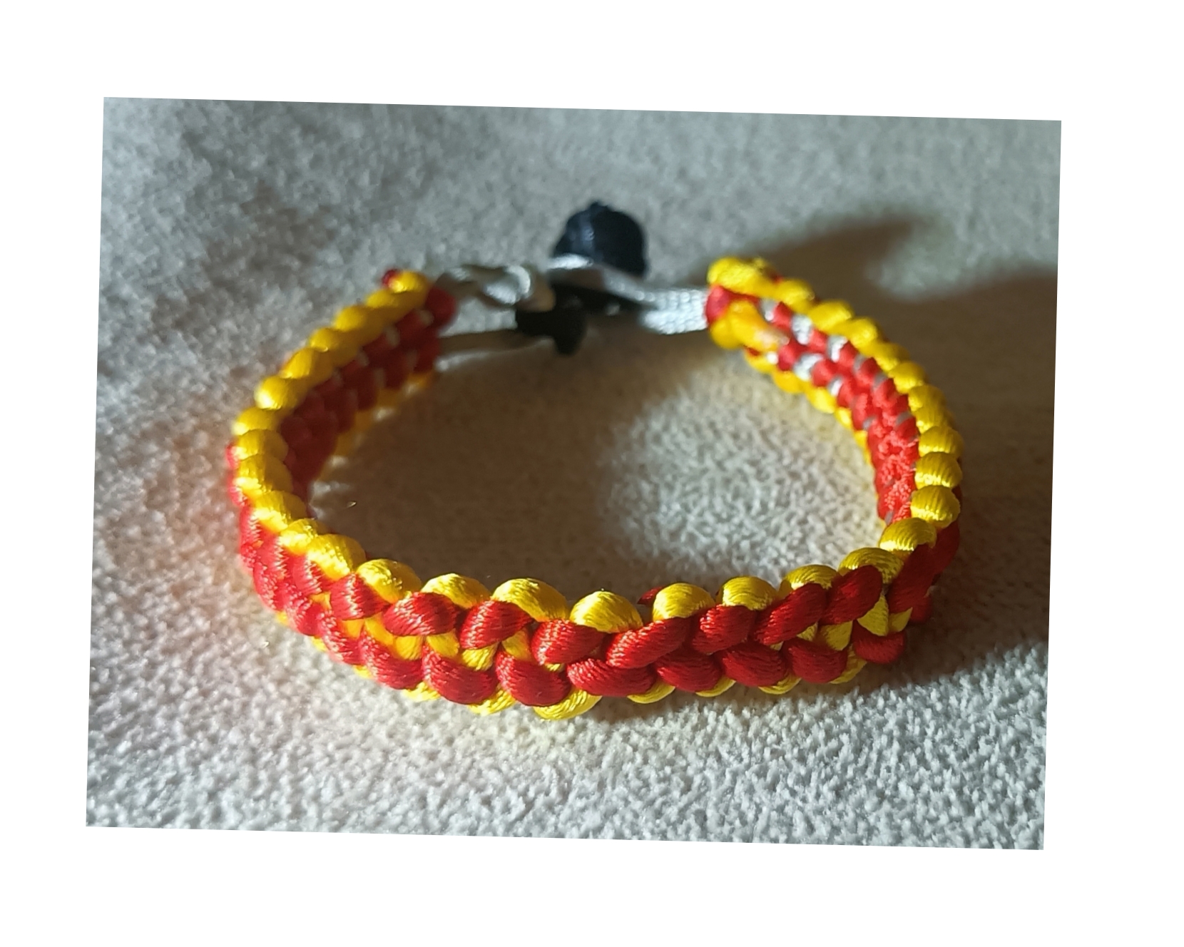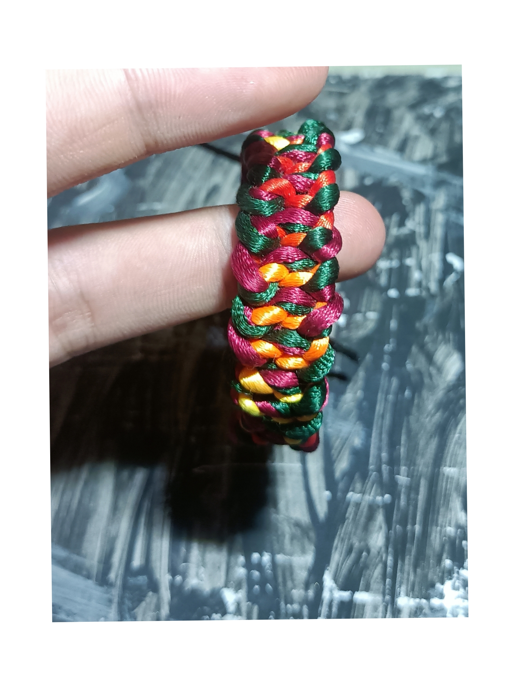 la confecciono una chica llamada alma en un pequeno poblado donde todos creian que los colores que despertaba su infinidad el rojo ,decian,traian fuerza y valor a este poblado de alli su leyenda decia que era mejor el rojo y su poderoso dios el amarrillo traia la luz y la alegria de los humanos alma marcho antes de que el se marchara, alma le entrego la pulsera y susurro mientras la lleves nunca olvidaras el camino de vuelta secreara un patron infinito que una vez puesta te llevaria hasta el donde la matrix de la vida me llevara
